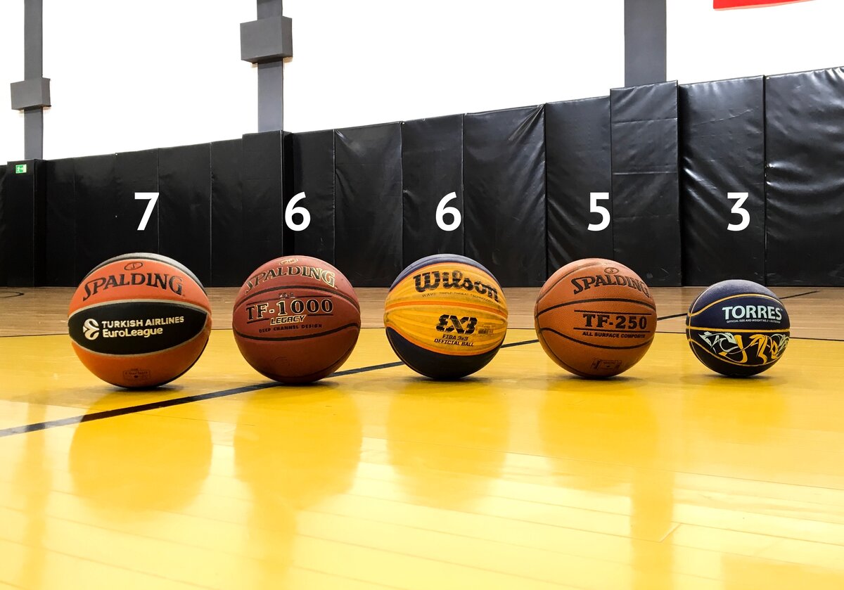 Немало людей удивляются, что баскетбольные мячи бывают разных размеров. Поэтому для тех, кто только начинает заниматься или узнавать о баскетболе, хочу внести ясность. Есть несколько классификаций мячей. Одна из них по размеру (диаметру) и весу. ✅ Мяч № 7 — «семёрка», диаметр 238,5-248,4 мм, вес 567-650 гр (да-да, разница почти в 100 грамм является допустимой). Этот мяч используют во всех взрослых мужских соревнованиях (кроме, FIBA 3х3). Мальчики с 15 лет, также, играют мячом 7 размера. ✅ Мяч №6 — «шестёрка», диаметр 230,57-234,71 мм, вес в пределах от 510 до 567 грамм (тут разброс допустимых значений в 2 раза меньше). Женские соревнования и детские с 13 лет (мальчики с 13 до 15 лет) используют мяч этого размера. Также, мужской чемпионат под эгидой FIBA 3х3 используют «шестёрку» Wilson, но вес мяча близок к «семёрке». ✅ Мяч №5 — «пятёрка», диаметр 219,75-226,1 мм, вес от 470 до 500 грамм. Он используется для соревнований детей, возрастом до 12 лет (баскетбол, минибаскетбол) ✅ Мяч №3 —