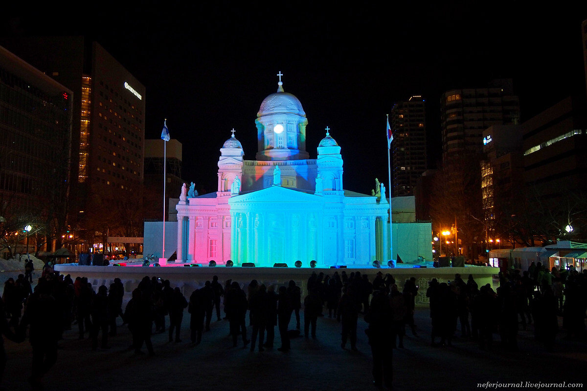 Одним из самых известных и масштабных зимних фестивалей в Японии является Саппоро Юки Мацури. В главном городе Хоккайдо вырастают скульптуры из снега и льда. Большие и маленькие, в виде животных, сказочных персонажей, мифических героев и исторических сооружений. Больше ста фигур и композиций! Некоторые размером с дом!!! Проводятся концерты и конкурсы, устраивают аттракционы, строят снежные горки, много ларьков с уличной едой. Фестиваль привлекает огромное количество гостей, очень много туристов. Я мечтала побывать там, увидеть все своими глазами, но это казалось мне чем-то нереальным. На самом деле вот, сбылось :)