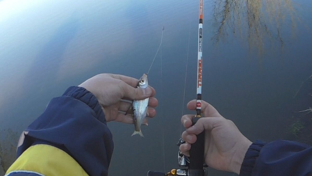 Сегодня утром были заморозки, температура была около нуля градусов, поэтому отложили на вечер выезд, пока копались в огороде, уже было 15:40, а мы только двинулись на водоем, все бы ничего, но отцу в 18:00 на работу. Так вот приехали значит, вода гладью, светит солнце, плещутся мальки, настроение на высоте. Начал ловить на поплавочку, прикормил и сразу поймал двух некрупных чебаков друг за другом - неплохое начало. Но дальше как обрезало - начались пустые поклевки и все в этом роде. Пробовал и менять глубину и поддергивал поплавок для привлекательности и подкидывал небольшие шарики прикорма (бывало чебак неплохо реагировал на это), но ничего не помогало. Тем временем отец ловил на дроп-шот с мелким заглотышем и так же на опарыша, у него успехи были не очень, но потом он поймал трех чебаков и практически на каждом забросе были тычки, я тоже решил оснастить свою тирельку, связал под руководством отца оснастку, крючок приходилось вешать см 40 от грузила, т. к. мешалась трава на дне и в