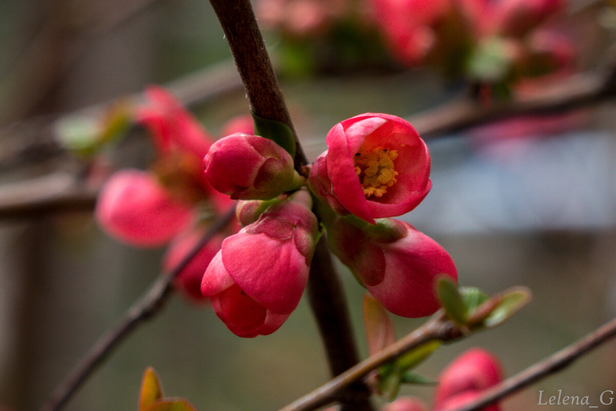Зацветает в теплые зимы в феврале, а цветет полным цветом в середине марта. Осенью на кустарнике созревают плоды -кисленькие, маленькие яблочки. Но, как правило, большинство плодов опадает.