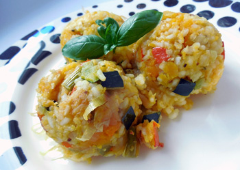 1) Ингредиенты: -2 чашки риса -2 небольших луковицы -1 луковица зеленого лука -1 маленькая тыква -1 маленький цуккини -1 маленький лук-порей - 3-4 зубчика чеснока -2 щепотки тмина -1-2 чайные ложки грейпфрута -2 столовые ложки соевого соуса - крупная соль - около 4 столовых ложек оливкового масла. 2) Чистка тыквы. Тыкву вымыть, аккуратно вычистить острым ножом, убрать семена и нарезать кубиками. 3) Приготовить на пару рис. Очистить лук и нарезать кубиками. Обжарить его на кусочке масла, посыпать промытым рисом, залить 1,5 см воды над рисом, не забываем солить. Рис готов через 15-20 минут. 4) Очистите и порежьте другие овощи. Приправить лук-порей и зеленый лук и порезать их на колесах. Выньте чеснок и порежьте его. Очистить огурец и нарезать кубиками, как тыкву. 5) Положите овощи в форму для выпечки. Мы все хорошо перемешиваем. 6) Приправить овощи в жаровне. Мы будем использовать грацию, тмин и соль. Можете добавить другие любимые травы. 7) Наконец залейте овощи оливковым мас