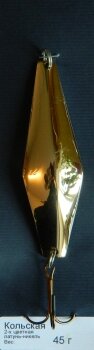 Колеблющая блесна Колебалка-Питер Кольская - это старинная ромбовидная русская приманка реинкарнированная Бубновым. Середина вогнутости у нее находится приблизительно на две пятых от хвостовой части. При равномерной проводке идет ровно, выгнутой стороной вниз и слегка поворачиваясь