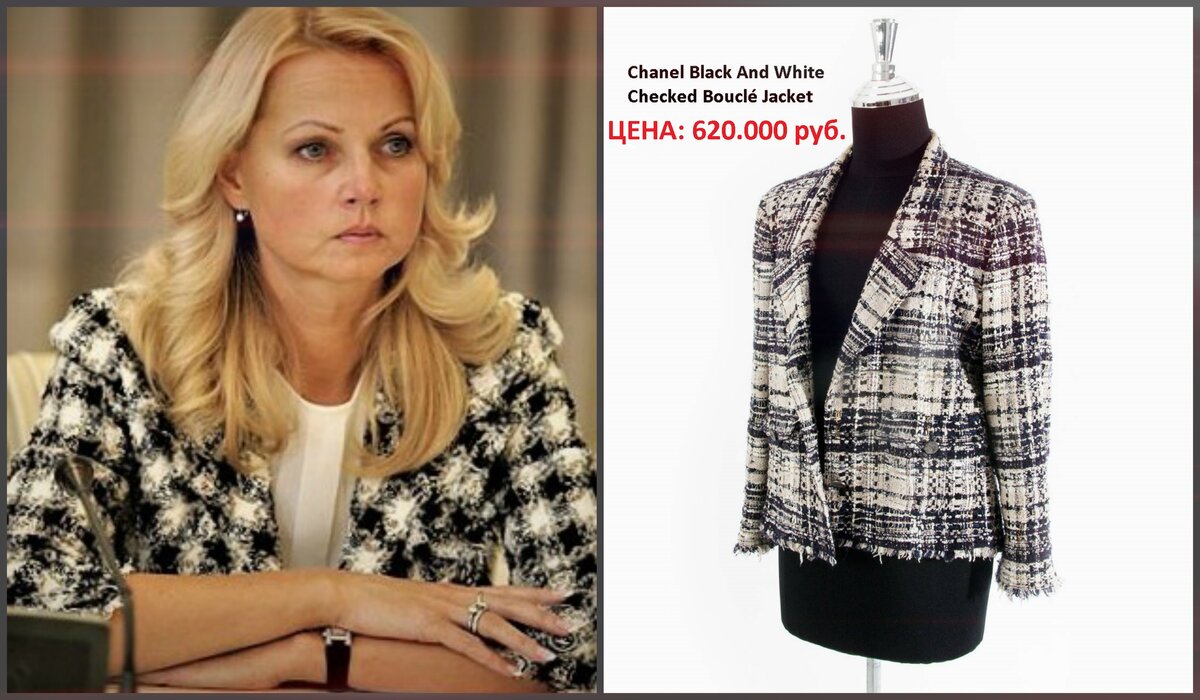 А между тем ее пиджак стоит больше полумиллиона рублей. Ведь это важная вещь – пиджак от Шанель. Без него она не может улучшать нашу жизнь. Один из политиков, Геннадий Гудков, присмотрелся к Голиковой и подсчитал, сколько стоит ее одежда. Оказалось, что вместе с украшениями, юбкой и сумкой ее наряд обошелся в почти в 11 миллионов рублей. Примерно столько выделяется в небольшой области на здравоохранение, если я не ошибаюсь.