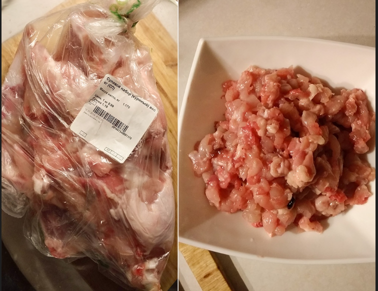 Всем привет. В самые паршивые времена меня очень выручали куриные скелеты (они же суповые наборы). Сегодня из них я готовлю куриные оладьи. Сразу предупреждаю, этот вариант только для очень терпеливых.