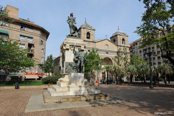 Памятник героической испанке, которая прославилась во время первой обороны Сарагосы в войне Испании и Франции в 1807–1814 годах. Любовником барышни был артиллерист, во время одного из штурмов весь расчёт орудия был убит, Августина Сарагоса выхватила из рук убитого любовника зажжённый фитиль и выстрелила по наступающим французам. Якобы свидетелем этого был командующий испанцев генерал Палафокс.