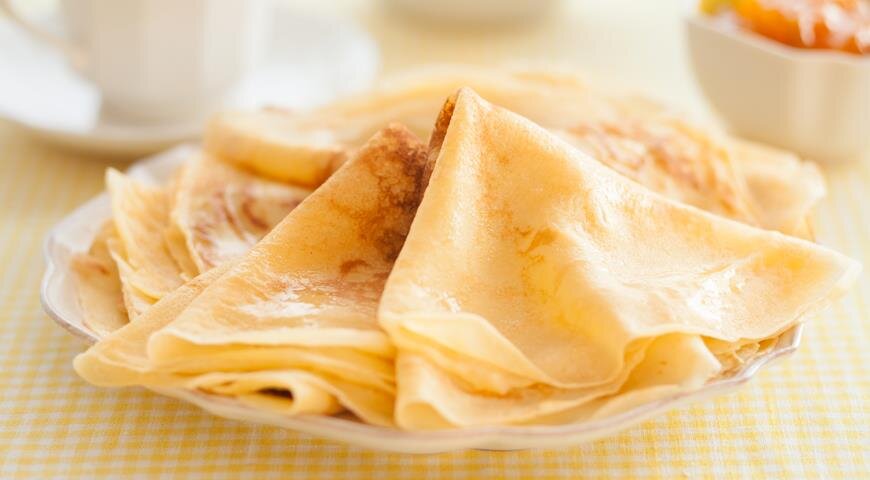 Для приготовления понадобится: Молоко - 1 л. Мука - 450 гр. Яйца - 4 шт. Масло сливочное - 60 г. Сахар - 2 ст. л. Соль - 1 ч.л. Ванилин - 1 г. Подготовка.Молоко и яйца нужно достать заранее, чтобы они были комнатной температуры, а масло сливочное растопить. Приготовление. В емкость наливаем молоко и по очереди добавляем ингредиенты: яйца, сахар, соль, ванилин и масло. Всё перемешиваем венчиком, если миксер, то не сильно взбиваем(нам не нужна пена). После просеиваем муку и постепенно высыпаем в нашу смесь, при этом помешивая венчиком. Тесто готово можно жарить блины. Смазывает сковороду и разогреваем её, чтобы она была раскалённой(можно не смазывать, но тогда нужно чуть-чуть подсолнечного масла добавить к нашей смеси). Если блины прилипают, добавить ещё подсолнечного масла. Обжариваем с двух сторон и выкладываем на тарелку. Приятного аппетита!