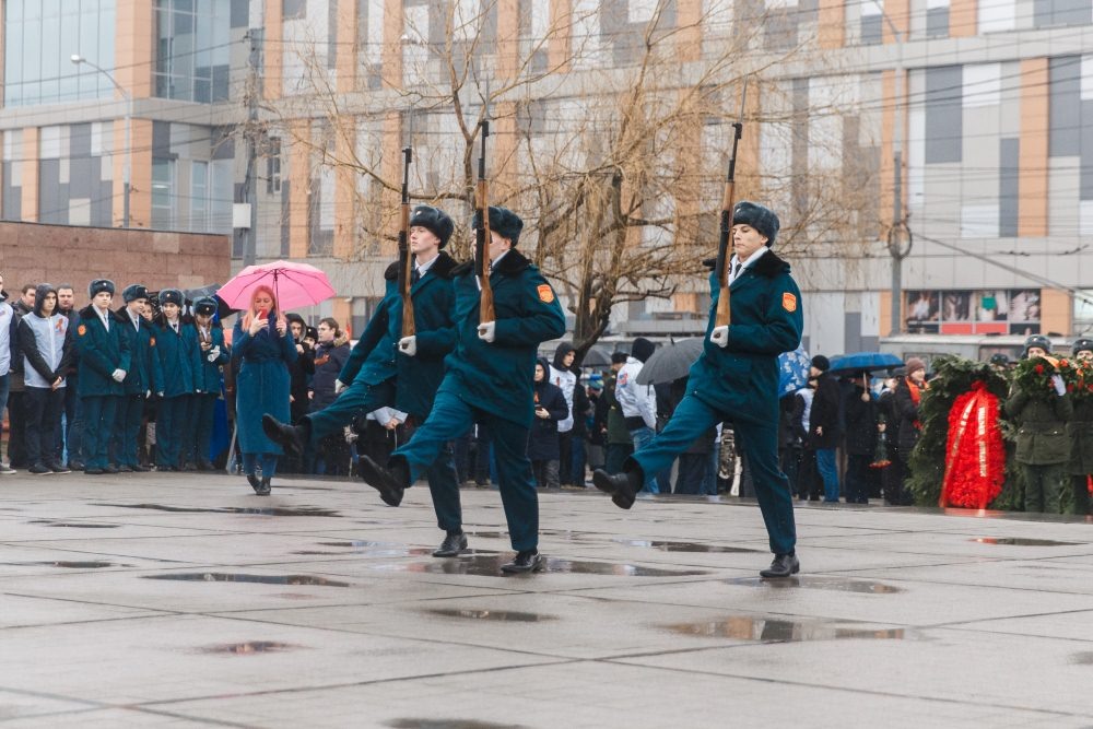 В ней приняли участие губернатор Краснодарского края Вениамин Кондратьев, председатель Законодательного Собрания Краснодарского края Юрий Бурлачко, глава города Евгений Первышов, председатель гордумы Вера Галушко. Церемония открылась возложением гирлянд воинской славы курсантами военных вузов краевой столицы. Руководители края и города, краевого и городского Совета ветеранов, представители общественных организаций и молодежи, военнослужащие и казаки возложили венки и цветы к мемориалу на площади Памяти Героев. В мероприятии также приняли участие начальник УФСБ по региону Игорь Колосов, главный федеральный инспектор по Краснодарскому краю аппарата полномочного представителя президента в ЮФО Алексей Ермаков, член Совета Федерации Владимир Бекетов, вице-губернаторы края, депутаты ЗСК и городской Думы, представители общественных и молодежных организаций. На площади Памяти Героев собрались тысячи человек. Прозвучали гимны России и Кубани в исполнении духового оркестра, оружейные залпы. Посл