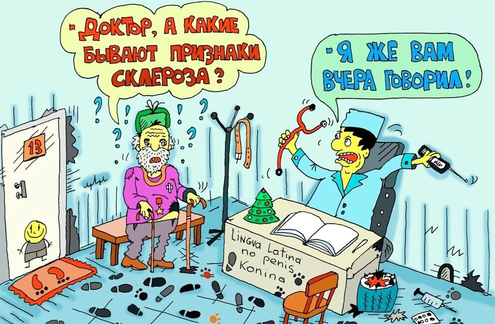 Муж: - Доктор, у меня заболела жена. У неё температура. Доктор: - Высокая? Муж: - Да. Метр семьдесят три. ** Врач говорит пациентке: - Не нужно очень широко открывать рот. Пациентка: - Вы же сказали, что хотите осмотреть мне горло. Врач: - Да, но я сам то останусь снаружи! ** Приятель отца: - Ну как здоровье твоего сына ? Вылечился от клептомании? Отец ребёнка: - Ему уже лучше. Теперь он приносит домов вещи, которые могут пригодиться в хозяйстве. ** Беседуют два приятеля. Приятель, который работает врачом: - Если ты когда-нибудь заболеешь, прибегай только к моим услугам. Второй приятель: - Разве ты единственный врач? Приятель, который работает врачом: - Нет, конечно, зато я самый безвредный из всех. ** Врач говорит больному: - Благодаря этому лекарству вы сможете быстро вернуться к вашему станку. Больной: - Так это же просто здорово, доктор! Как раз недавно я стал безработным. Подписывайтесь на канал, пишите комменты и ставьте лайки. Будет весело!