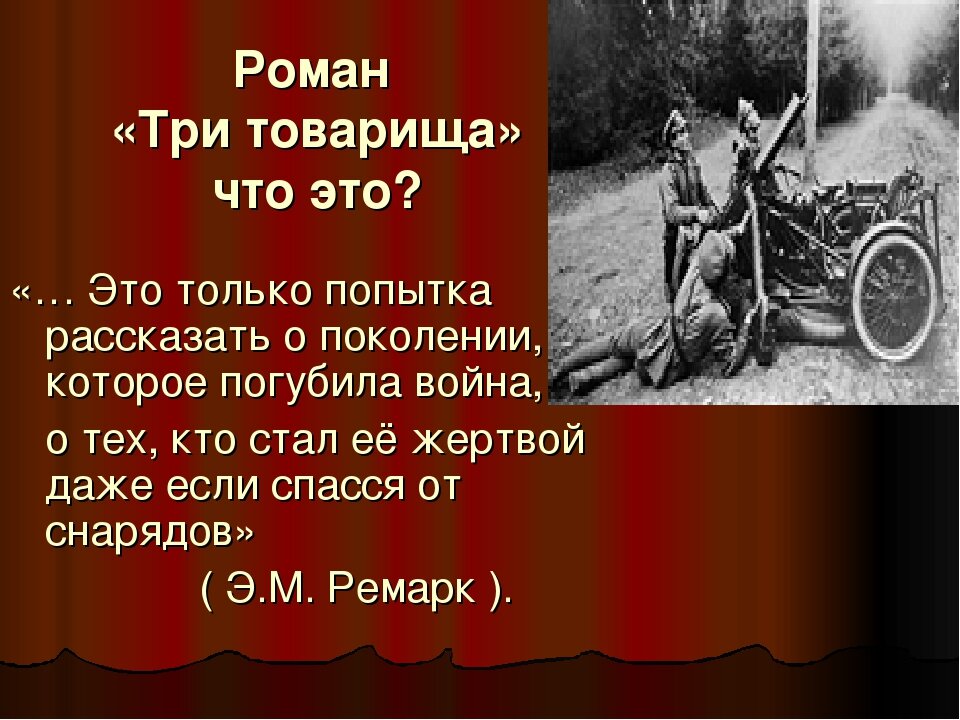 Роман "Три товарища" великого писателя Эрих Марии Ремарка. О верности, дружбе и любви.