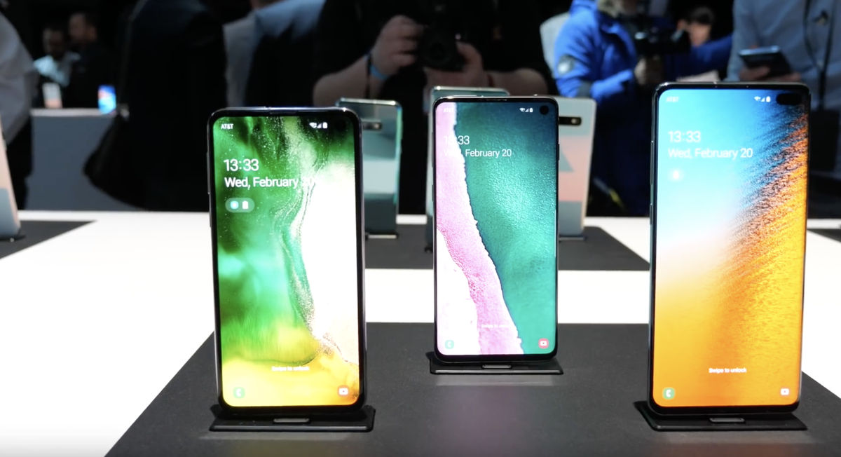 20 февраля в городе Сан-Франциско произошла презентация новых флагманов Samsung - смартфонов Galaxy S10 и S10+. На презентации был выставлен стенд с новыми гаджетами, где желающие могли их пощупать, потрогать, пофотографироваться, вообщем сделать всё, что угодно при условии возврата аппаратов обратно на демо-стенд. А буквально через несколько часов после этого события в Барселоне проходила презентация ещё одного смартфона - новинки от Samsung складного Galaxy X. В Сан-Франциско на презентации были показаны Galaxy S10, S10E, S10+. Маленький S10 отлично лежит в руке, аппарат достаточно тонкий в исполнении. Отличительной особенностью устройства является то, что производитель не стал делать для фронтальной камеры ни чёлку, ни каплевидный вырез, а просто прорезал экран и установил туда фронтальную камеру. Причём экран сам Samsung называет не просто Infiniti, а Infiniti O, специально акцентируя внимание на вырез в экране. В Galaxy S10+ их сделали две: одна обычная, вторая сверх-широкая.