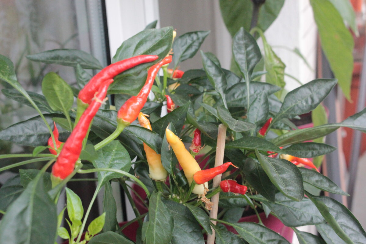 Перец в теплице, конечно, здорово, но порой хочется, чтобы и дома на подоконнике стояло небольшое зеленое растение, украшенное яркими перчиками. Я равнодушна к цветам в горшочках, но фанатею от домашних, цветущих и плодоносящих перцев. Из моего опыта выращивания мне нравятся два сорта миниатюрных, кустарных перчиков. Это сорта Невеста и Локо. Невесту приобретала у компании "Гавриш". Это острый миниатюрный перчик, который на кусте радует аж двумя цветами: желтым и красным. Такое разноцветье радует взгляд, смотрится красочно и позитивно. Локо, выпускается компанией "Агроника". По внешним данным более миниатюрный, форма у него чем-то напоминает лесную землянику, а цвет фиолетовый. По вкусовым данным Локо значительно более жгучий, нежели Невеста. Выращивание домашних перцев занятие довольно-таки простое, без дополнительных сложностей. В середине февраля я высаживаю нужное количество семечек в баночки с землей, поливаю все, накрываю пленкой и ставлю в темное место до проклевывания рост