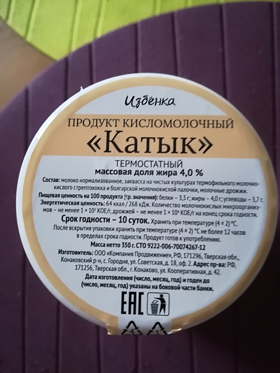 Согласно Википедии, Каты́к — кисломолочный продукт, распространённый у тюркских народов и в Болгарии. Производится из натурального молока путём его сквашивания специальными бактериальными культурами. От всех других видов простокваши катык отличается приготовлением его из кипячёного молока, что обеспечивает более высокую жирность. Перед сквашиванием молоко при кипячении зачастую выпаривается на треть. Сквашивается в течение 6-10 часов в тепле (20-40 градусов) избегая тряски и перемешивания. То есть главным отличием от простокваши является предварительное кипячение молока. Вкус у напитка довольно приятный, похоже на ряженку. Однако в отличие от ряженки, как и простокваша он неоднороден, содержит жидкие и твердые фракции. Касательно стоимости 86 рублей за 350 грамм это примерно 246 рублей за килогра