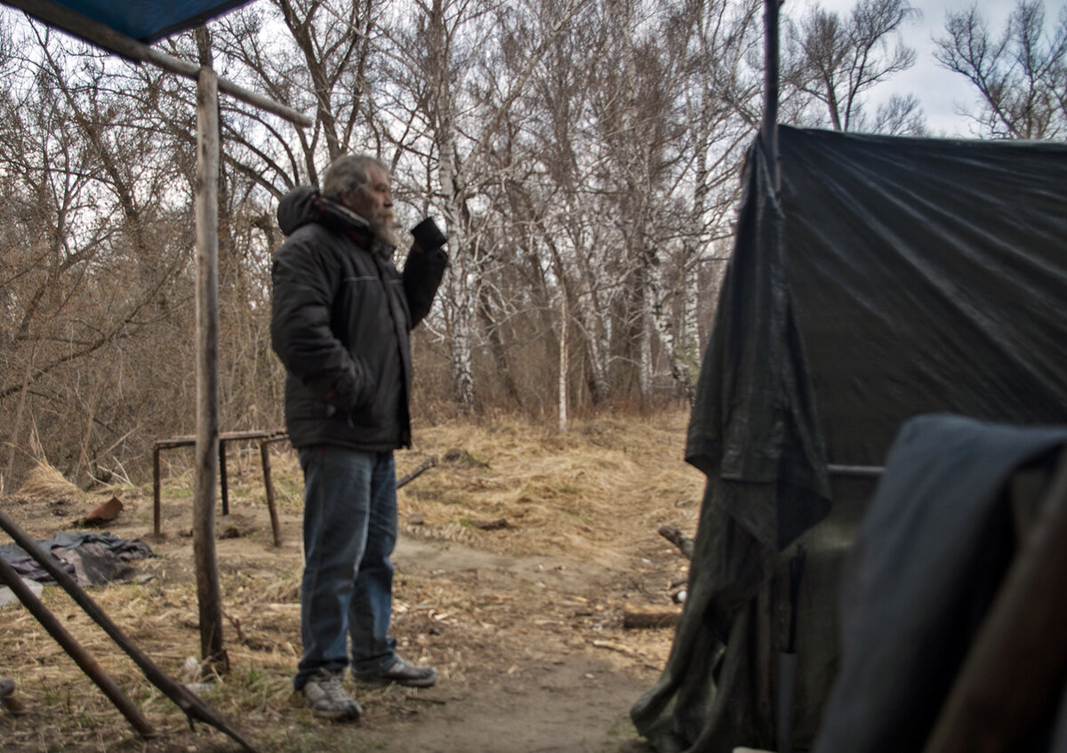 После 9 мая стало резко холодать. Днем температура не поднималась выше 3 градусов тепла. Ночью же стоял устойчивый минус, но в рамках разумного - не ниже 3-4 по Цельсию. Вечером же 11 мая термометр показывал минус 5. Поэтому перед сном Леший оделся теплее, чем обычно. Натянув дополнительное шерстяное трико, надев свитер и более теплую куртку, отшельник залез под спальник. Поначалу было нормально, но холод, исходящий от земли давал о себе знать. Пришлось спальник переводить в "боевое" положение. То есть не накрываться им, а, застегнув молнию, залазить в него полностью. Было неудобно, так как это сковывает свободу движений, но стало теплее. Леший сжался в комочек, с головой упрятавшись в мешок, чтобы нагреть внутренне пространство теплым дыханием. "Шептуна бы еще пустить для пущего тепла. Своя то вонь, поди, глаза не выест", - подумалось Лешему и от этой мысли ему стало смешно, но "шептун" не пускался, потому что он уже пару дней сидел на голодном пайке. Холод создавал еще одну неприя