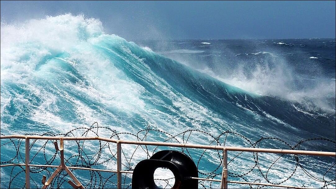 Речь пойдёт не об опасностях, исходящих от стихии, на что как бы намекает волна на снимке. И почему на ограждении палубы укреплена колючая проволока поговорим ниже, это всё-таки внешняя угроза. Ведь существет масса способов склеить ласты, находясь на самом судне, как снаружи корпуса, так и внутри его.