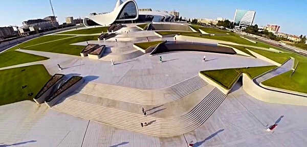 Несмотря на великолепие самого Центра, отдельных слов заслуживает каскадный парк разбитый у его лицевой стороны. Красиво вписанный в понижающийся ланшафт, он является неотделимой частью всего комплекса под названием Культурный Центр Гейдара Алиева. Площадь парка 13,5 гектар, под ним расположена подземная парковка, а на поверхности искусственное озеро, два небольших пруда и каскадные водопады. В обычное время в сквере немного народу, в основном туристы и мамы с маленькими детьми. Зато есть возможность насладиться удивительными фигурками, разбросанными по всей территории парка. Помимо постоянных композиций, здесь выставляются и временные. Например такие: С джейранами раскрашенными разными художниками. Представлены не только азербайджанские художники, но и представители других стран. Но больше всего конечно местных работ: По всей площади сквера, расставлены какие-то загадочные скульптуры, которые можно разглядывать часами. Но главной фишкой и лицом парка у Центра Гейдара Алиева являются у