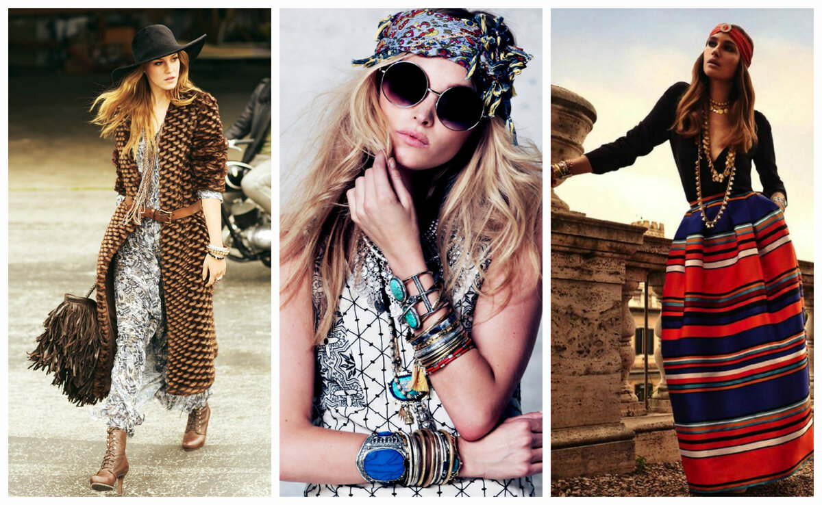 В этом стиле смешаны элементы стилей хиппи, готики, кантри и гранжа. Нельзя представить бохо и без этнических мотивов.