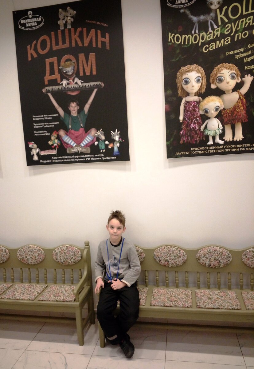 Каникулы Артемия начались с путешествия, а закончились посещением московского театра. Между этими событиями были "Кидбург", приготовление пиццы в "Додо", - ну и так, по мелочи :)... Однако вернёмся к театру. "Волшебная лампа" - это не просто детский театр, а театр детской книги, то есть там высокие требования именно к выбору текстов, поэтому кукольные представления - не только развлекательные, но и поучительные. Мы это знаем, потому что уже были у них на спектакле "Котёнок по имени Гав". А в этот раз собирались на "Винни Пуха", но его заменили на другую постановку, так что мы снова погрузились в кошачью тему :) - посмотрели "Кошкин дом".