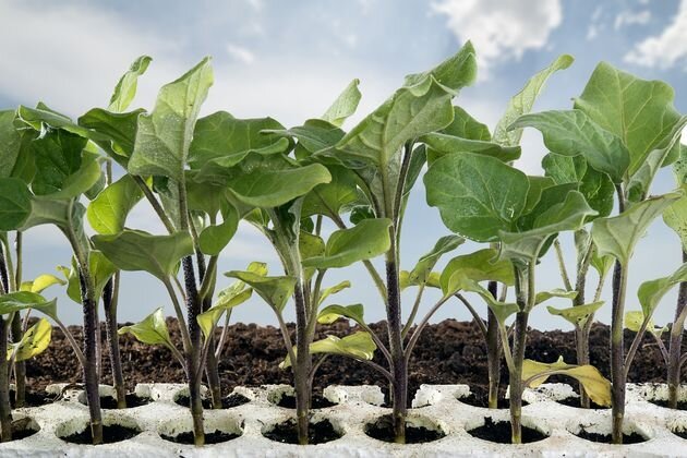 Традиционно из всех пасленовых культур на рассаду в первую очередь высевают семена баклажана. Напомним, что нужно делать на первом этапе выращивания, чтобы получить здоровые и крепкие растения. Сроки посева баклажана зависят от скороспелости сорта, а также от места выращивания – обогреваемая или необогреваемая теплица, открытый грунт или временные укрытия. Обычно к посеву приступают после 20 февраля. Рассада будет готова к посадке у поздних сортов за 70–80 дней, у среднеспелых сортов – за 55–70 дней, у ранних сортов – за 50–55 дней. Раньше всего начинают посев, если баклажан предполагается выращивать в обогреваемой теплице. Для открытого грунта и временных пленочных укрытий рассаду выращивают с начала апреля. Для посева баклажана можно использовать готовую смесь для рассады или составить собственный грунт из легкой огородной земли (2 части) и перегноя или компоста (1 часть). Сделать смесь более рыхлой можно, добавив по 1 части торфа и песка. Полезно дополнить смесь 5 столовыми ложкам
