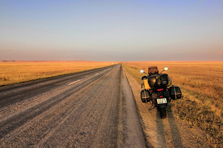 Про превышение скорости упомянул вовсе не случайно. В Казахстане с его протяженными пустынными участками дорог, фурами и зачастую нелогично расставленными знаками ограничения скорости (на трассе ни с того ни с сего может стоять знак "60", за которым нет знака отмены ограничения, а до очередного перекрестка ехать довольно долго) очень сложно эту самую скорость не нарушать. А в вопросе фиксации нарушений используется самый действенный метод - движущиеся в потоке автомобили ДПС, регистрирующие скорость встречных автомобилей и в случае выявления превышения включающие проблесковые маячки, разворачивающиеся и настигающие нарушителя. Наказание практически неотвратимо. И в такой ситуации с учетом немалого расстояния (от Уральска до Шымкента около 2000 км, путь неблизкий) нужно принять для себя какую-то модель в отношении скоростного режима: или ехать без нарушений, строго соблюдая все знаки (что ну о-о-очень нудно, такой режим выдержать сможет только очень спокойный водитель, плюс планируемое на дорогу время нужно умножать минимум на 1,5), либо в состоянии внутренней гармонии, с располагающей улыбкой и позитивом собирать выписываемые протоколы. С мотоциклом в этом случае проще - при встречном движении невозможно запечатлеть "номер" (с чем впоследствии поспорят кыргызские гаишники), что давало чуть большую расслабленность при соблюдении ПДД.