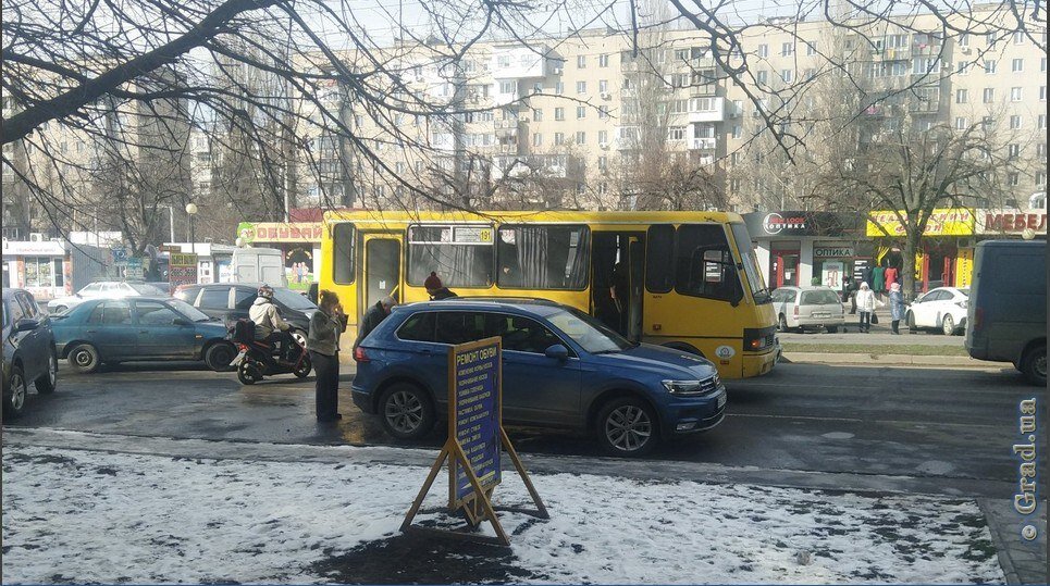 ДТП произошло сегодня днем на проспекте Глушко вблизи Киевского рынка: столкнулись маршрутный автобус и легковой автомобиль «Фольксваген», которые двигались в попутном направлении. Транспортные средства получили механические повреждения. Пострадавших в ДТП, согласно предварительной информации, нет. Участники происшествия заняли центральную полосу при движении от площади Независимости в сторону Люстдорфской дороги, сообщает очевидец Leshka на Одесском форуме. Движение по проспекту Глушко затруднено. Подробности на сайте Телерадиокомпании