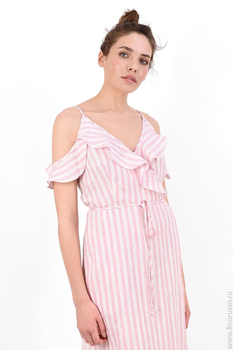Изделие выполнено из итальянского 100% льна — легкого, мягкого, приятного к телу. Оно идеально в жаркую погоду. В готовом виде изделие прошло обработку stone wash. Сарафан на запах способен превратить любую женщину в нежное и грациозное создание. V-образный вырез горловины эффектно подчеркивает шею и удлиняет ее, плечи сужаются, а талия становится отчетливее. Женственный сарафан отражает главные тренды этого лета: акцент на плечи, принт полоска, романтичные воланы. С чем носить?
