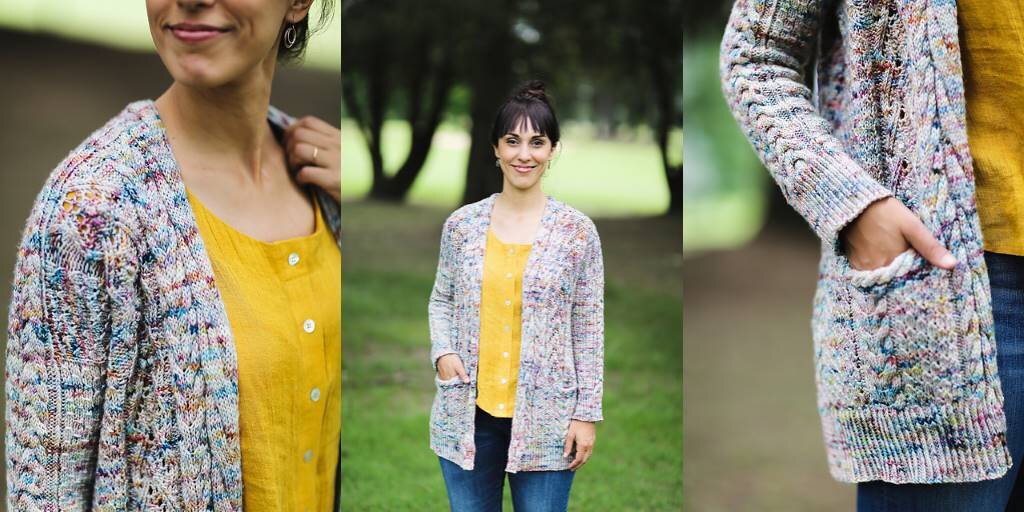Кардиган вяжется спицами без швов сверху вниз творческой и сложной конструкцией. Вы готовы к фестивалю кос, ажура и цвета?