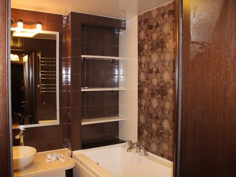 Какую отделку выбрать в коричневую ванную? Керамика, панели, обои или штукатурка...