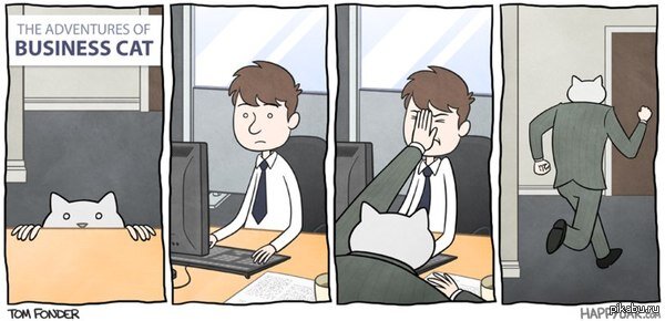 Приключения бизнес-кота - это проект английского художника Тома Фондера. По-началу комикс выходил в режиме одна картинка в день, но сейчас четкого расписания нет. Все по наитию, собственно, как и в жизни главного героя - успешного кота-владельца крупного бизнеса. Эксцентричный и непредсказуемый, бизнес-кот знает, как втереться (в прямом смысле слова) в доверие к партнерам и эффективно вести деловую переписку ("sdfkjjjjjjjjjjkjjkkkkkkkkkkkkkkkkkkkkkkkkkkkkkkkkkkk..."). Ну и пожить он, разумеется, любит на широкую ногу ("25 тысяч в месяц только на молоко? Мистер Кот, вы это серьезно?"). Вот что было бы, если бы вашим начальником был ваш кот: С таким руководителем никогда не соскучишься. Хотели бы с ним работать? Понравилась история? Ставьте лайк! Хотите быть в курсе самых важных кошачих новостей - подписывайтесь на наш канал. Котики вас любят!