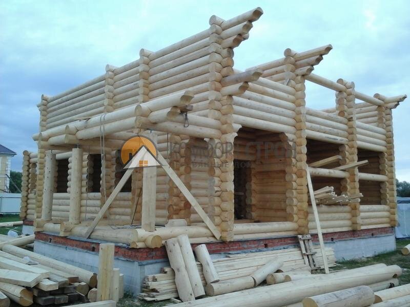 Галерея готовых деревянных домов и бань из бревна. Сборка комплекта деревянного дома Оцилиндрованные бревна имеют одно неоспоримое преимущество - у них единое сечение по всей длине, а это значит, что укладываются они легко, прекрасно сцепляясь между собой и обеспечивая высокую точность сборки дома. Возведение стен начинается по плану, указанному в проектной документации, с использованием утепляющих слоев и нагелей. Перед сборкой деревянного дома или бани все оцилиндрованные бревна тщательно очищают и производят обработку специальными составами.