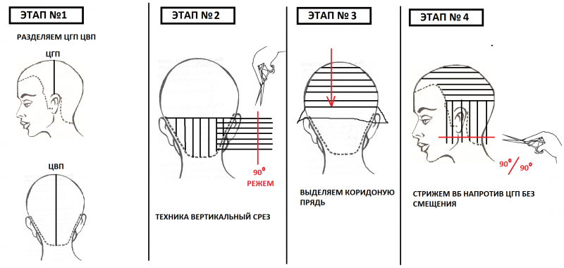 Привет всем начинающим и продолжающим парикмахерам! Сегодня я хотел бы порассуждать о проборах. Да-да, именно о них, родимых. Какое самое главное правило при стрижке и окрашивании? А? Не слышу? Не надо стесняться, а надо громко и четко произнести – чем меньше пробор, тем точнее стрижка, чем меньше пробор, тем лучше окрашивание. Ну давайте пока окрашивание оставим, а поговорим о стрижках. Практически в каждой школе парикмахерского искусства, а уж в моей (ну в смысле где я прохожу обучение) – нам каждый день вдалбливают кирзовым сапогом непреложную истину – если хочешь точную стрижку, делай пробор не более 0,5 см. Возьмем любую схему, ну вот для наглядности – каре вертикальным срезом: Какие наши действия? МЫ начинаем с нижнезатылочной зоны, и идем тонкими вертикальными проборами, простригаем, ориентируясь на контрольную прядь. Отчесываем следующий пробор, снова простригаем и так далее. А что, можно иначе, спросите вы? И я отвечу – ДА! Можно стричь блоками, захватывая всю контрольную