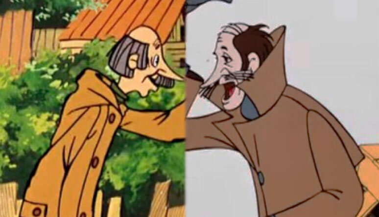 "Трое из Простоквашино" является одним из самых любимых мультфильмов детей, росших на советской мультипликации. И все бы ничего, но местный почтальон просто не дает мне покоя. Кто все таки такой Печкин: нагловатый, но добрый почтальон или беглый преступник? Внешность Почтальона Печкина мы знаем как высокого дяденьку пенсионного возраста, который постоянно ходит в одном и том же пальто. В похожем пальто постоянно ходил и бандит Курочки из "Приключения Васи Куролесова". Обратите внимание на их прическу. У них обоих волосы только по бокам, а на макушке блестит лысина. Но особенно выделяется форма носа. У обоих персонажей нос длинный и острый. Также мы знаем, что у Печкина есть усы, которых у Курочкина нет. Но тем не менее, изначально бандит Курочкин притворяется продавцом на рынке, налепив на себя поддельные усы. А теперь вспоминаем фразу почтальона про то, что усы можно подделать. Очень странно. Вам не кажется? Кроме того, даже в милиции говорят, что фамилия Курочкин поддельная, но зато