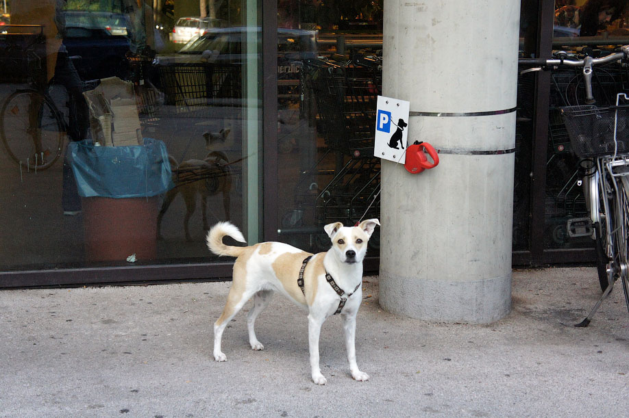 У супермаркета есть такие металлические конструкции, над ними — табличка: собака. Имеется в виду — тут место для привязи. Ряд таких металлических штук для великов, а следом — штуки для собак. И вот я курю у входа. Смотрю на привязанную собаку. Дворняга. Классическая. Желто-серая. Отсылка к овчарке. Саблевидный хвост, уши стоячие, черный нос, рост в холке — 45-55, на 10 пониже основоположника. Снег идет, метет немного. Собака стоит в напряжении, смотрит на центральный вход неотрывно, время от времени перебирает лапами. И все ее нервы наружу — вся концентрация на чистом ожидании, весь страх одиночества, вся любовь. Она — воплощение ожидания. Выдернутый наизнанку зубной нерв. Ни мгновения отдыха. Она ждет. Она ждет, ждет, ждет. Она ждет тяжело, теряя энергию в астрономических единицах. Она ждет так, как ждет мать сына с войны. Она потеряла мир, потеряла себя. Ничего нет, кроме жгучего желания увидеть хозяина.