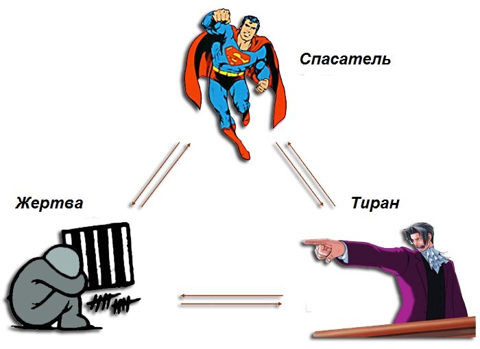 В треугольнике Карпмана есть три роли: жертвы, агрессора и спасателя. Про то, куда уйти из роли жертвы я писала тут, поэтому сегодня я расскажу как я была спасателем. Самый главный признак спасателя в том, что он пытается помочь другому. И чем более слабой и обиженной выглядит жертва - тем больше своих сил будет вкладывать спасатель... Забывая, собственно, спросить - а нужно ли конкретного человека спасать. Вот в чём проблема - в нашем обществе в принципе поощряется безвоздмездная помощь. Иногда это даже прямо вымогается - "ты должна сделать для ... всё возможное!". Но только самое главное в помощи - вопрос "нужна ли тебе помощь, и если нужна - то чем помочь?" - остаётся за рамками происходящего. Как это выглядит изнутри? Сначала все события происходят... Ну как будто из житий святых, великомучеников или, на худой конец, блаженных, о которых могут рассказать в церкви: ах, ему так плохо, его обижают, надо ему помочь! Человеку же объективно плохо! Я кинулась помогать - "я же понима