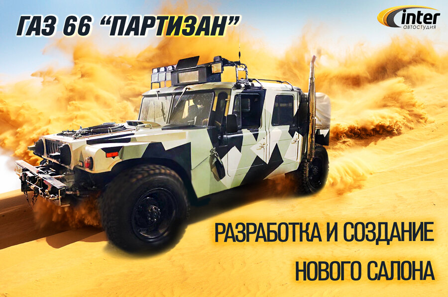 Но сегодня мы начнем рассказ о нашей работе по созданию салона для нестандартного авто, с нуля. Это не первое преобразование машины. Видимо, у машины был длинный путь)). Автомобиль — переделанный ГАЗ 66, стилизованный под Хамер Н1, с народным названием "Партизан".
