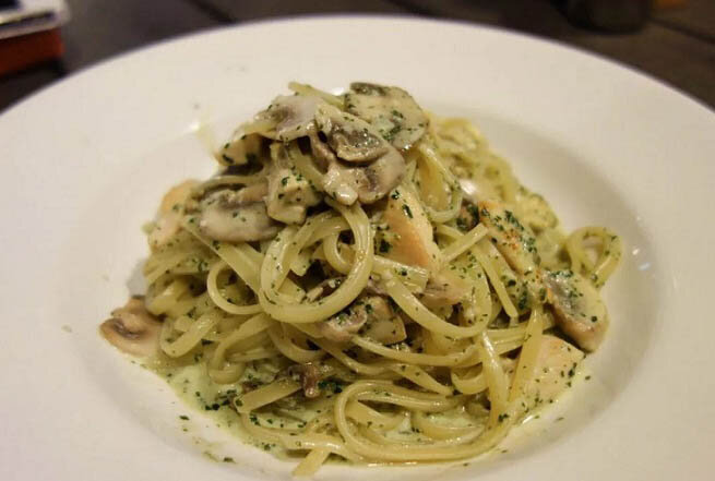 Паста с грибами и свининой в сливочном соусе готова.