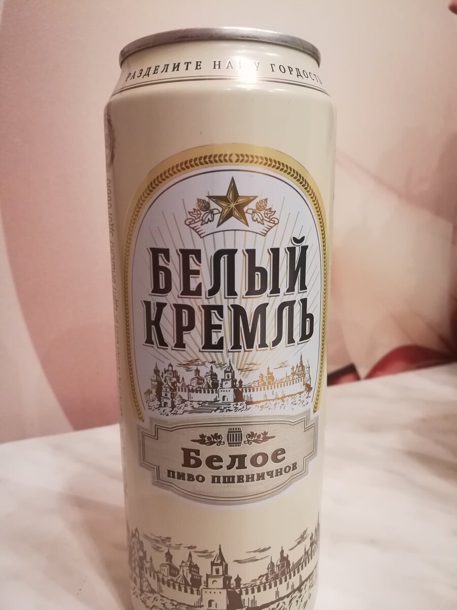 Всем привет! Вчера зашел в пятерочку рядом с домом и увидел новинку на полках с пивом - пшеничное пиво "Белый Кремль", изготовленное в республике Татарстан, на заводе "Татспиртпром". Конечно же я ее приобрел и хочу сегодня представить вам его на обзоре. Пшеничное или белое пиво – это слабоалкогольный напиток, в основе которого лежит пшеница. А если быть точным до конца, то пшеничный солод. Благодаря этому пшеничное пиво имеет свой уникальный желтовато-белый цвет. Пиво куплено в Пятерочке за 65 рублей. Состав: вода, пивоваренный солод пшеничный, пивоваренный солод ячменный, хмель, пивные дрожжи. Никаких добавок в виде цедры апельсина и кориандра здесь нет. Описание: Производитель: "Татспиртпром", р. Татарстан