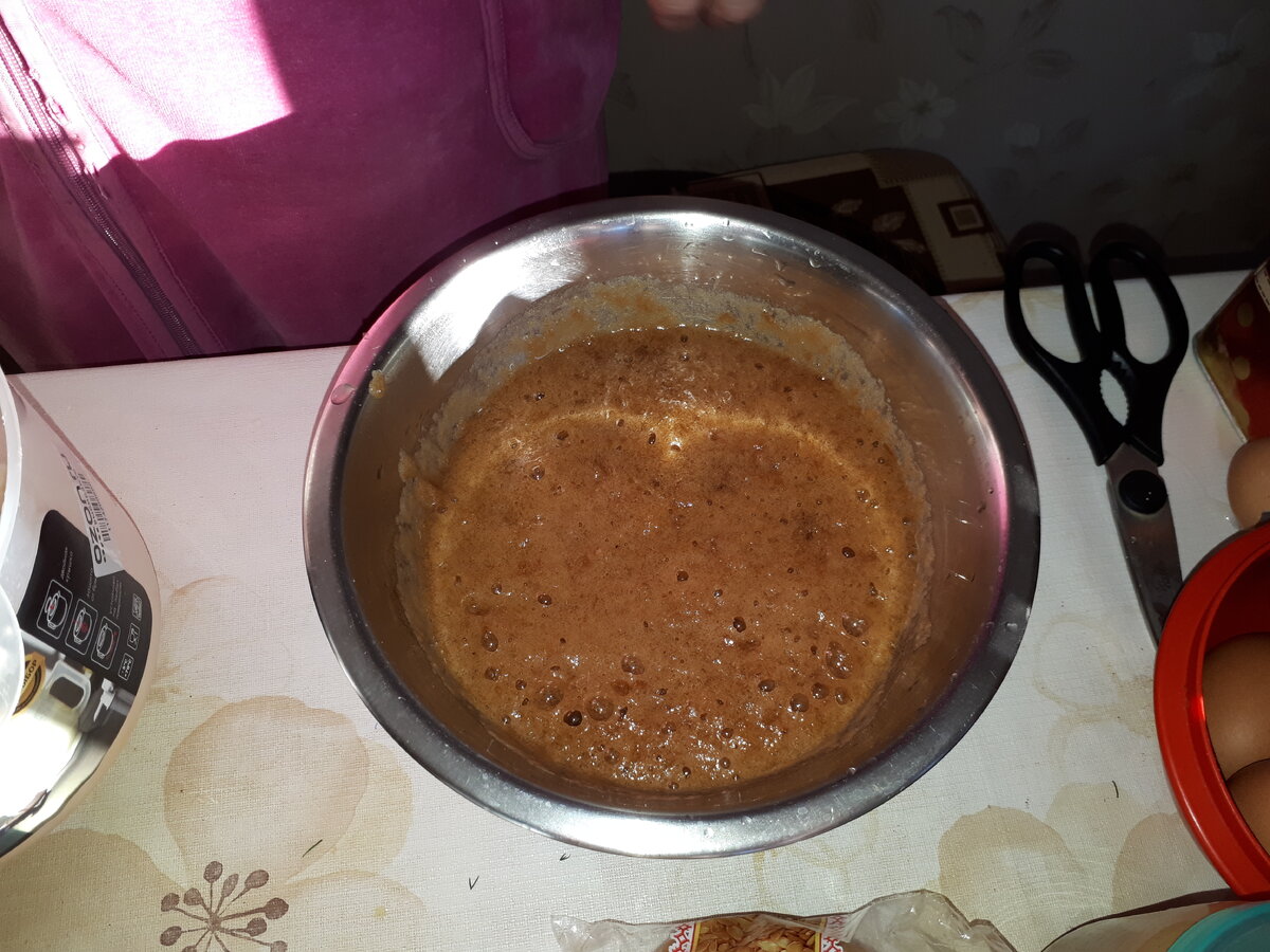 Почему, когда распределяют время сколько у человека уходит времени на сон, работы и т.д. в течение дня, никто не считает время на приготовление еды? А ведь это немало. Большинство людей каждый день что-нибудь готовят, а некоторые по 3-4 раза. В этой серии статей "Маман и я" буду вам рассказывать о блюдах приготовленных мной и моей мамой. Она очень любит готовить и даже мечтала стать кондитером, но стала экономистом. У мамы множество различных приспособлений (гаджетов) для этого процесса, про которые я тоже буду рассказывать. Первое блюдо этой серии - Пирог из варенья Состав: варенье 250 гр(1 стакан), сода 1 чайная ложка, яйцо 1 шт, сахар 2 столовых ложки, соль пол чайной ложки, мука 2-2,5 стакана. специи по вкусу - ванилин, корица. Как готовить: в варенье добавить соду,размешать,подождать 5-10 минут. Взбить венчиком яйцо с сахаром добавить соль. Соединить оба состава, постепенно помешивая ввести муку, добавить специи. Форму 22-24 см смазать растительным маслом,удобно это делать сил