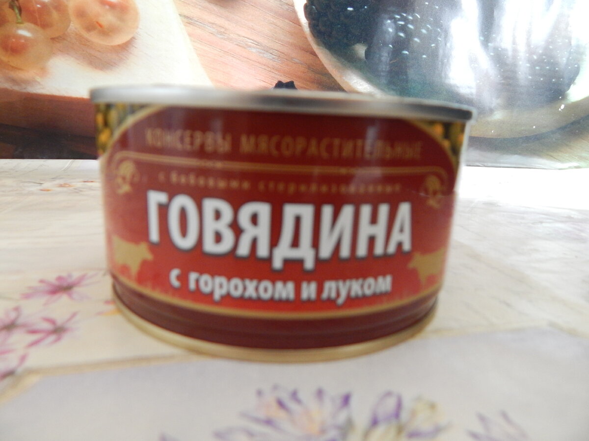 Обзор: Говядина с горохом и луком из магазина "СВЕТОФОР" за 37 рублей 50 копеек
