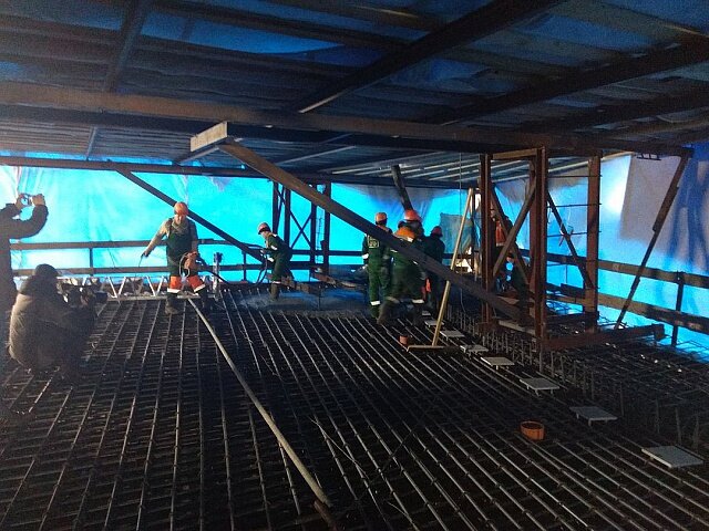 На полное затвердевание раствора уйдет месяц. Строители забетонировали участок между двумя опорами плиты проезжей части Фрунзенского моста. Об этом рассказали в пресс-службе компании «Стройтрансгаз». Потребовалось 324 кубических метра бетонной смеси. Для качественной работы строители установили специальное технологическое укрытие. Подходящие условия для затвердевания и набора прочности бетона поддерживают 15 теплогенераторов под опалубкой плиты. Двойной слой из специальных материалов создает «эффект термоса». Набирать прочность основа будущей проезжей части будет в течение месяца. К бетонированию последнего участка плиты строители планируют приступить этой весной. Параллельно продолжают строительство развязок на улицах Фрунзе и Шоссейной, а также основного хода автомобильной дороги. Рабочие укрепляют откосы насыпи, устанавливают инженерные сети и коммуникации, укрепляют откосы съездов железобетонными плитами. На объекте в две смены работают более 300 человек и 58 единиц техники. Фото: