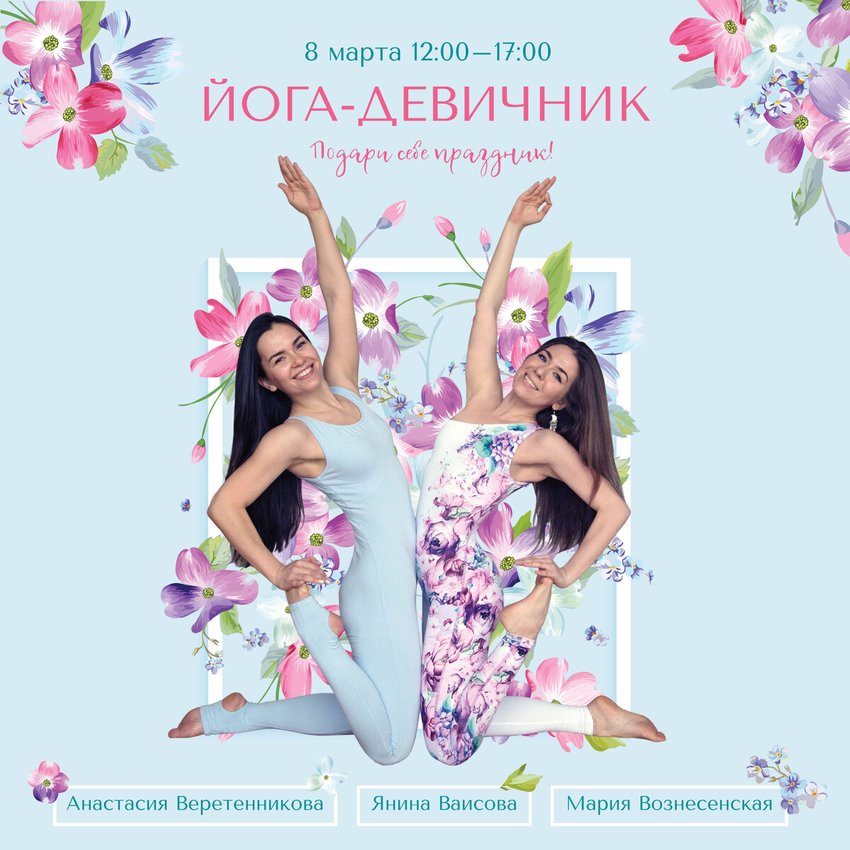 http://pranayoga.ru/events/2305 Прекрасные йогини, приглашаем вас провести самый женственный праздник 8 марта в теплой атмосфере «Праны» на Войковской! На празднике вас ждет: • 12:00–13:45 Текучая и приятная практика йоги от Анастасии Веретенниковой и Марии Вознесенской. • 13:45–14:10 Йога-нидра: расслабляющая практика для тела и ума, восстанавливающая силы и наполняющая новой энергией. • 14:10–14:30 Авторские угощения от нашего кафе. • 14:30–15:00 Практика йоги голоса от Анастасии Веретенниковой.
