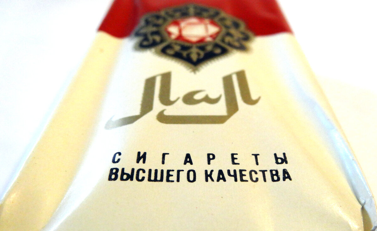 Эти сигареты выпускались с начала 1970-х, на Таджикистанской табачной фабрике, в городе Душанбе. Мнимая особенность - сигареты до 1980 г. маркировались как "высшее качество", а после 1980-х - "4 класс", низший в сигаретах с фильтром, если мне память не изменяет. Всё дело в "мягкости" ГОСТа до 1981 года, когда многие сигареты не заслуженно именовались "высшим качеством". За почти десятилетие (хотя мне не известна дата прекращения выпуска бренда) изменилась цена - "высшее качество" стоило 30 коп., а "4 класс" стоил уже 40 копеек. В моём распоряжении оказалась пачка "высшего качества", производства до 1980 года. Пачка мягкая, красно-белая, где как раз на границе основных цветов, располагается рисунок камня в оправе. За эти десять с лишним лет "Лал" имел добрый десяток вариантов оформления пачки. Однако, присутствовал один практически неизменный элемент дизайна - кроваво-красный камень, похожий на рубин. Это действительно драгоценный камень, жемчужина Памира, самый почитаемый камень на мус