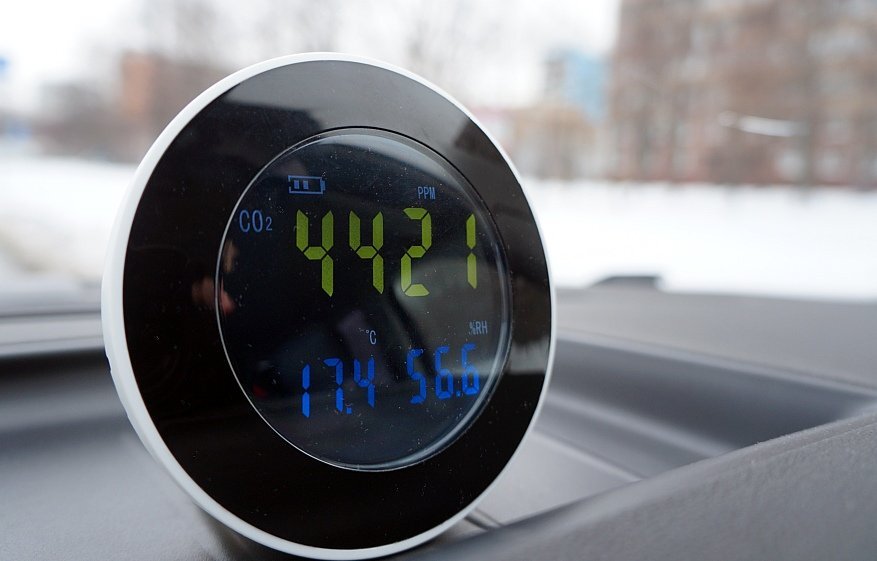 В качестве “тестовой площадки” выступал салон старенького Тигуана. В обычных городских поездках с одним водителем в салоне уровень CO2 колебался в пределах 400-600 ppm. В пробках можно было наблюдать примерно 650 ppm. Но самое интересное, разумеется, при включенной рециркуляции воздуха. Ровно за 15 минут CO2 подскакивал с 620 до 1780 единиц! Т.е. рост идет примерно по 80 ppm в минуту и, например, за час он мог бы скакнуть до 4800 единиц. В общем, теперь вы знаете, почему в машине нельзя спать с закрытыми окнами и оставлять в салоне детей или животных. Причем, таких смертельных случаев регистрируется достаточно много. Погуглите...