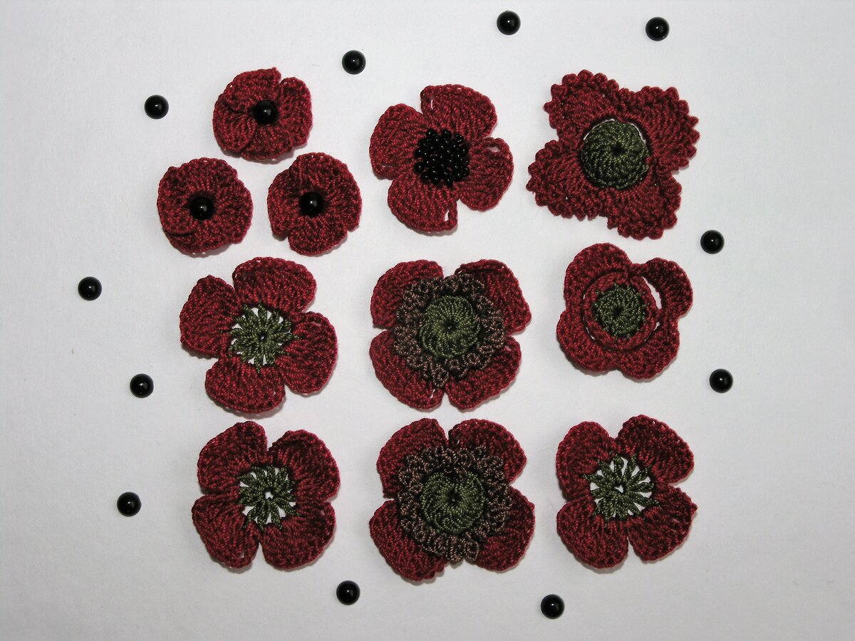 В конце зимы и накануне женского праздника хочется ярких красок. Красные маки крючком – то, что нужно. Пригодятся они для цветочных композиций, украшения детских шапочек и всевозможных аксессуаров. Красный цвет бодрит, поднимает настроение, настраивает на рабочий лад. Впрочем, маки могут быть и розовыми, и желтыми, и даже синими. Зависит от желания, задумки мастерицы. Для вязания понадобится пряжа красного, темно-зеленого и коричневого цветов. Также пригодится черный бисер, полубусины и пайетки. Условные обозначения Ка – кольцо амигуруми Вп – воздушная петля Сс – соединительный столбик Сбн – столбик без накида Ссн – столбик с накидом Псн – полустолбик с накидом Сс2н – столбик с 2 накидами 1. Мак с серединкой из бисера Набрать 12 ссн в ка, соединить. Лепесток - 4 вп, 1 сс2н с 1-ую петлю предыдущего ряда, во 2-ую – 2 сс2н, в 3-юю – 2 сс2н, в 4-ую – 1 сс2н, 4 вп, сс. Следующий лепесток начать с 4 вп и 1 сс2н в эту же 4-ую петлю, далее продолжить вязать, как описано выше. Всего связать