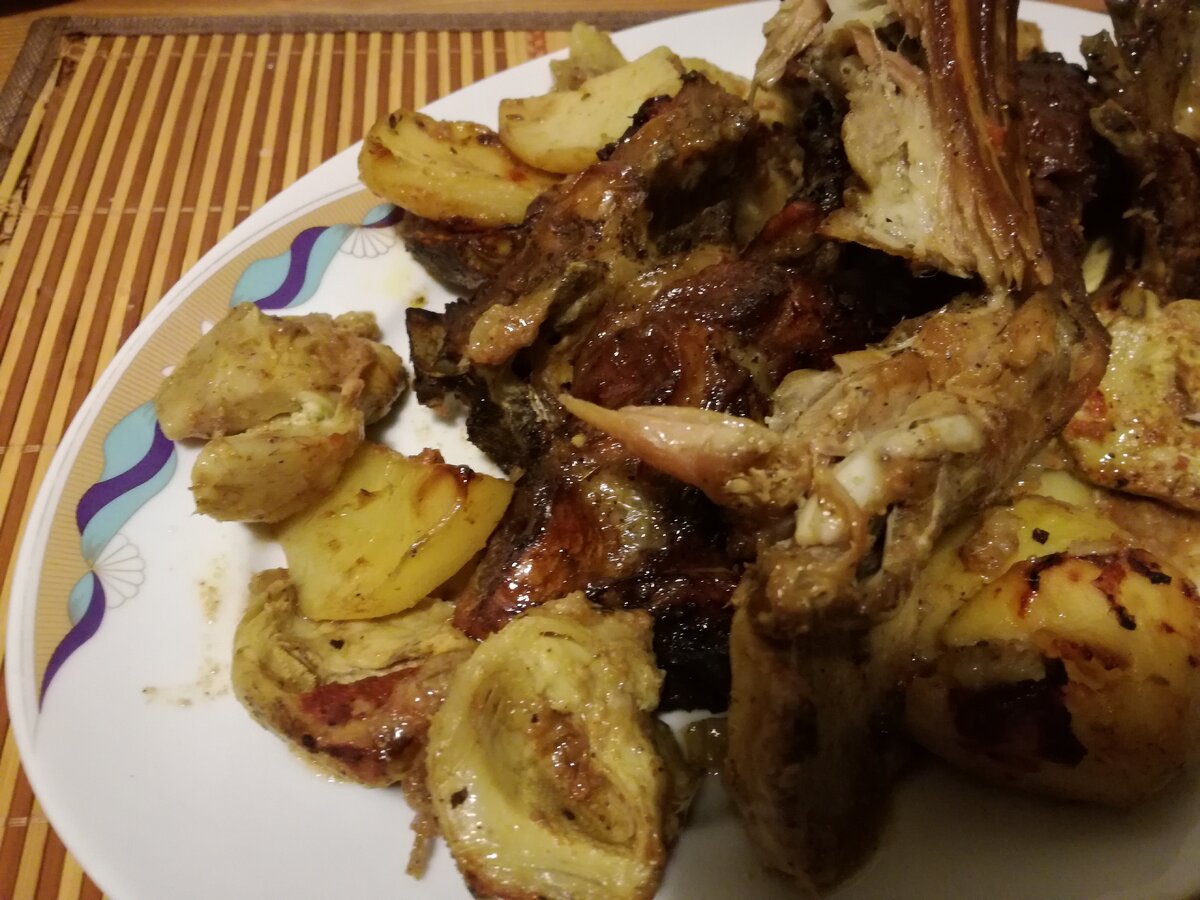 Барашка нам передали из деревни, он жил в морозилке и ждал моего дня рождения)), запекли мы его с картошкой и артишоками-очень по гречески)). Артишоки чистила моя свекровь, занятие это очень муторное, долгое, плюс можно уколоться колючими листьями (благо можно купить и замороженные, если что)) Итак, поехали..