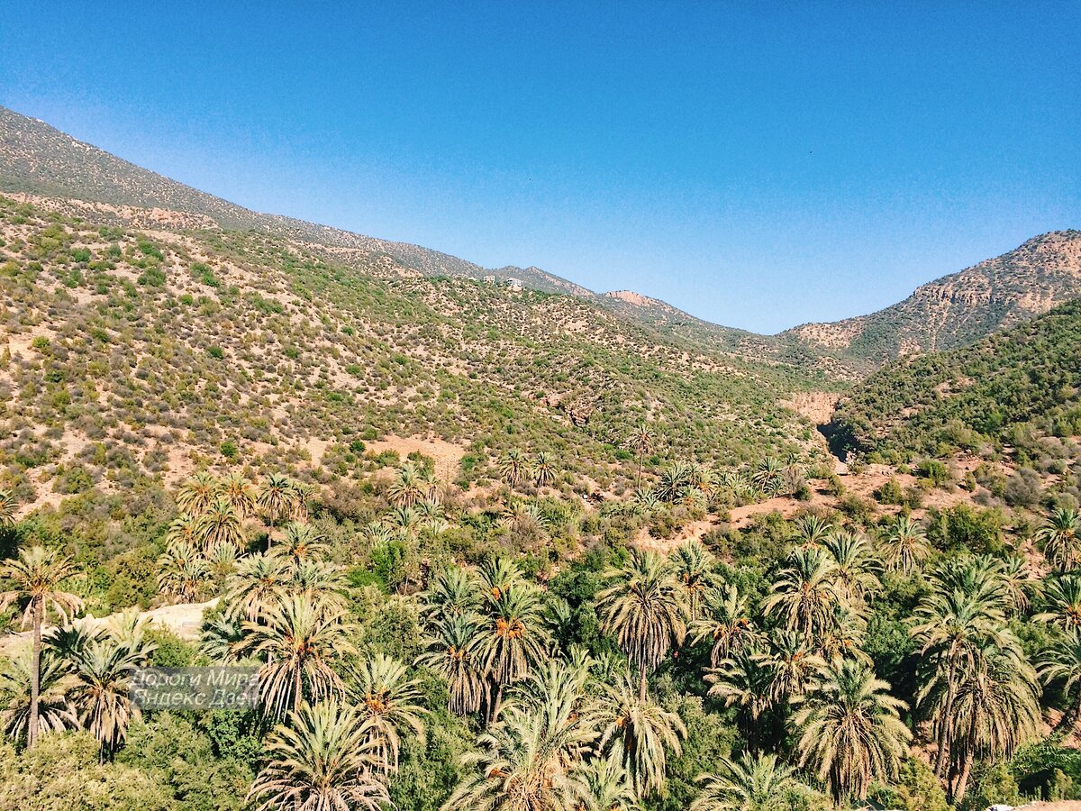 Пейзажи Марокко в первую очередь ассоциируются с бескрайней пустыней. Потом уже на ум приходят горы и Атлантический океан. Но далеко не все знают, что посреди скальных ландшафтов в Марокко можно обнаружить оазисы, в которых так приятно провести время, особенно в жаркий день. Один из таких оазисов находится недалеко от туристического города Агадир, что на юге страны. Всего каких-то 30 километров от него и вы оказываетесь в месте под названием Райская Долина (Paradise Valley). Пальмовая роща с каньоном, по которому течет река, образующая естественные купели– вот что вас ждет. Сюда приезжают искупнуться (ведь плавать в Атлантическом океане сомнительное удовольствие) или просто погулять. От парковки трогаемся в путь пешком. Некоторые люди доходят только до первых природных бассейнов. Идти сюда недолго – минут 20. Но здесь уже красиво и рядом есть кафе, где можно перекусить. Из-за всего этого в данном месте всегда большое скопление людей. Местные в выходные дни приезжают сюда семьями на
