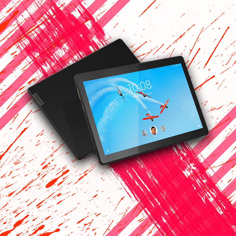 Бюджетный универсал - Lenovo Tab M10. Планшет включает в себя функции для детей и предлагает хорошие характеристики за свою цену. У Tab M10 пластиковый корпус, который удобно держать в руке, благодаря прорезиненной поверхности и весу в 480 грамм. Планшет продается в цветах State Black и Polar White. Lenovo оснастила устройство оперативной типа LPDDR3 объемом в 3 ГБ и внутренней памятью на 32 ГБ. Но по факту доступной памяти 23,4 ГБ и к счастью M10 поддерживает карту памяти microSD до 256 ГБ. Планшет так же оснащён портом USB Type-C, работающим по стандарту USB 2.0, разъемом для наушников и парой динамиков. Lenovo Tab M10 поддерживает все современные стандарты связи Wi-fi до IEEE 802.11ac и подключается к сетям 2,4 ГГц или 5 ГГц. Спутники устройство находит быстро и точность GPS вне зданий до 5 метров. Камеру у Tab M10 всего две, 5 МП задняя камера и 2 Мп селфи камера. Задняя камера поддерживает автофокусировку и записывает видео в 1080р со скоростью 25 кад/сек. Фронтальная камера тоже