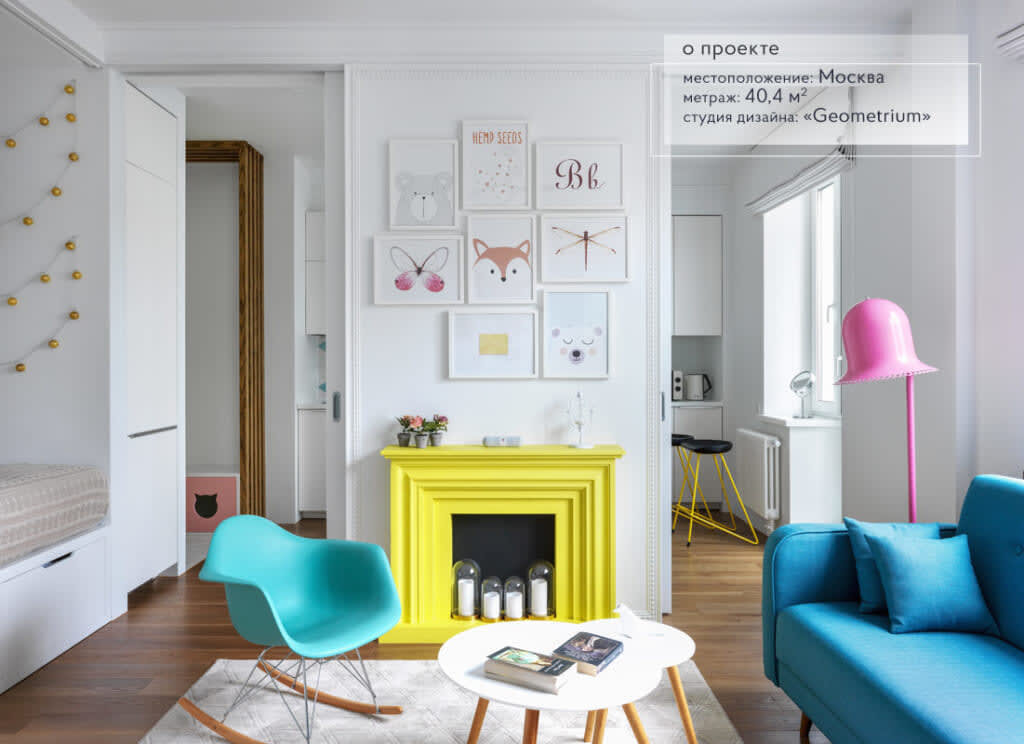 Наши любимые проекты — те, которые отражают личность заказчика. Например, как здесь: неординарный, ироничный, современный интерьер для активной девушки, которая любит играть на пианино и катать на скейте, а еще собирается стать ученым-биологом. Каждый из этих аспектов отражен в дизайне! Хотите узнать, как? Это был тот самый случай, когда перед дизайнерами открылась полная свобода творчества: ни одна стена квартиры не была несущей. Убрали все перегородки, оставив только колонну, разделяющую гостиную и кухню. Площадь санузла увеличили за счет коридора. Получилось открытое пространство, где нет ничего лишнего. Вместо дверец поставили разъезжающиеся перегородки — они куда удобней и функциональней. Небольшой лайфхак: если вы хотите визуально расширить пространство небольшой квартиры, постарайтесь во всей отделке использовать одни и те же материалы. Так оно не будет дробиться на множество отдельных зон, а будет восприниматься, как целостная картинка. Посмотрите, как реализовала это здесь ком