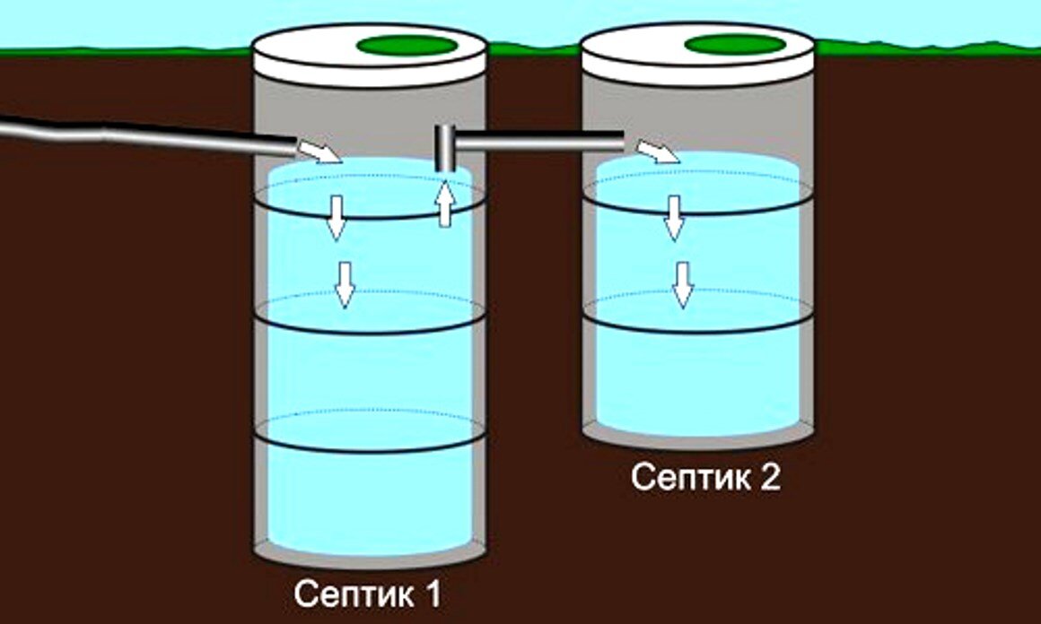 Как показывает практика, самый простой септик, это двухкамерный септик, а самый дешевый материал для него, шины грузовых машин. Сделать можно и из красного кирпича, пластиковых емкостей и бетона.