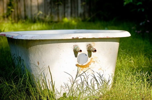 Если Вы как и я затеяли ремонт, то не спешите выбрасывать старые вещи. Сам по себе знаю, что желание избавиться от старых вещей очень большое. И если вы планируете выбросить старую ванну то не спешите. Немного творчества и фантазии помогут вам сделать со старой ванны настоящий шедевр. Я полазил по просторам интернета и нашел хорошие идеи по применению старой ванны. Более того, это все можно сделать своими руками без особой сложности. Самое распатроненное применение старой ванны, это конечно же в саду: Отлично так же подходит для декоративного пруда: Для любителей барбекю и шашлыка старая ванная может стать отличным мангалом: Так же она может послужить в роли кресла и письменного столика: Не спешите выбрасывать старую ванную. Как видите из нее можно сделать много полезного и главное своими руками. Так же вам может быть интересно: Неординарные поделки для санузла Дачный санузел с системой антисептик своими руками Тайна жизнь санузла. Нелепые поделки Спасибо за внимание! Пишите В