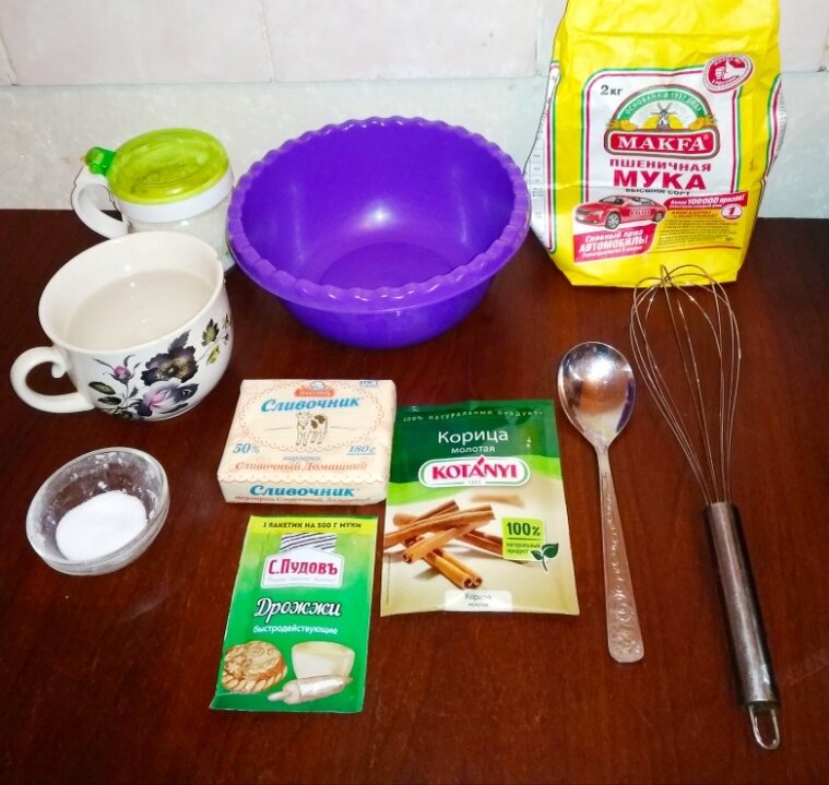 Если хочется чего-нибудь к чаю, предлагаю испечь булочки с корицей. Нам понадобится: